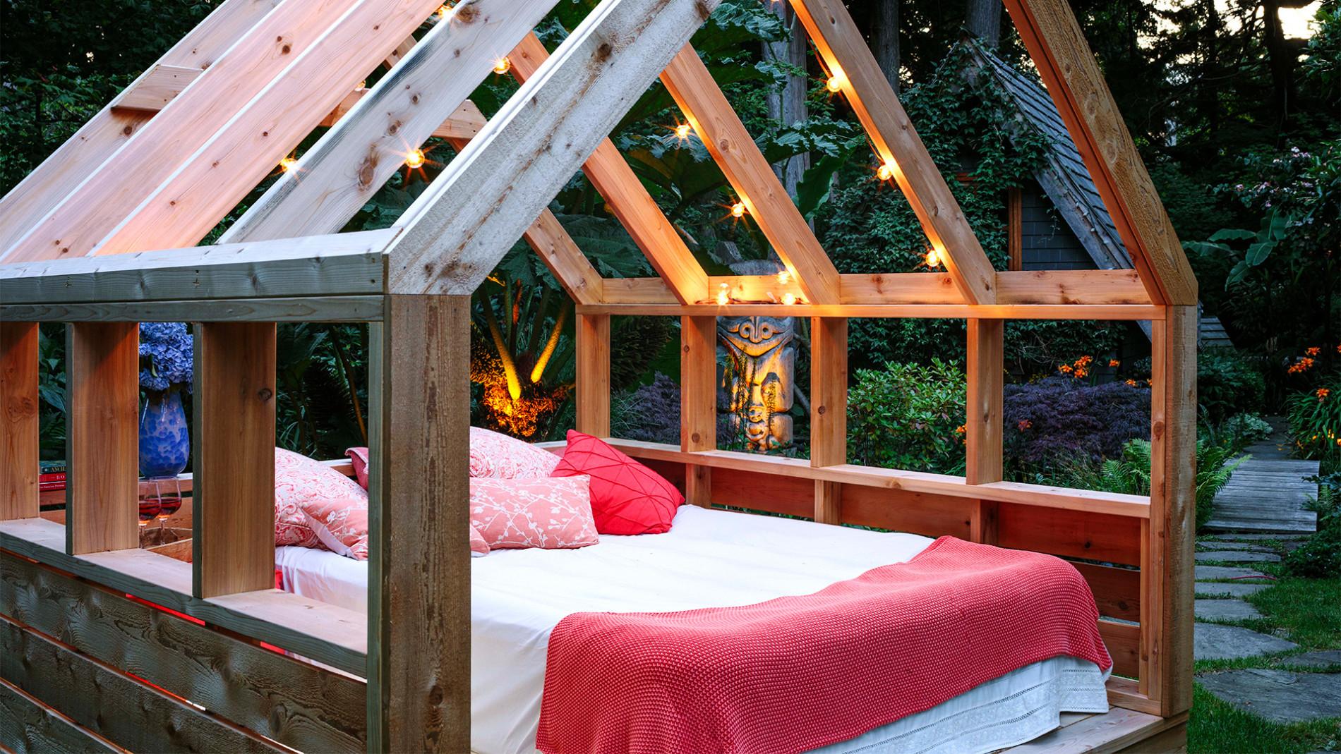 This Red Cedar Daybed Cabana is Perfect for Getting Cozy right in your own backyard! The frame is versatile and be modified or customized to your own liking.